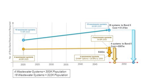 - The options identified to date would cost around £443 million for the four systems and are expected to provide 26 band reductions in 2050 (the options do not result in a band 0 for all risks).