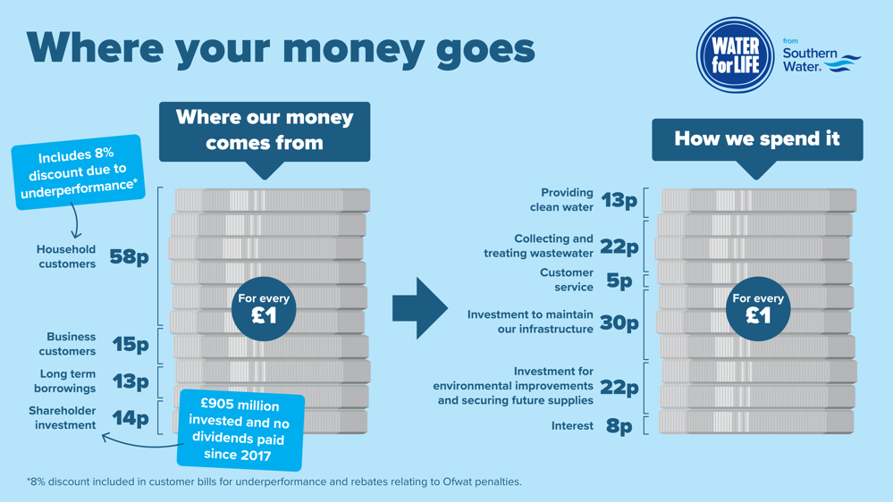 Water meters record the amount of water you’ve used. In the table below, you’ll see how we charge per cubic metre. One cubic metre is a thousand litres, or put simply, it’s about the amount you’d use if you took 11 baths, or 31 showers (each lasting four minutes), or flushed the loo 166 times (using the large button).