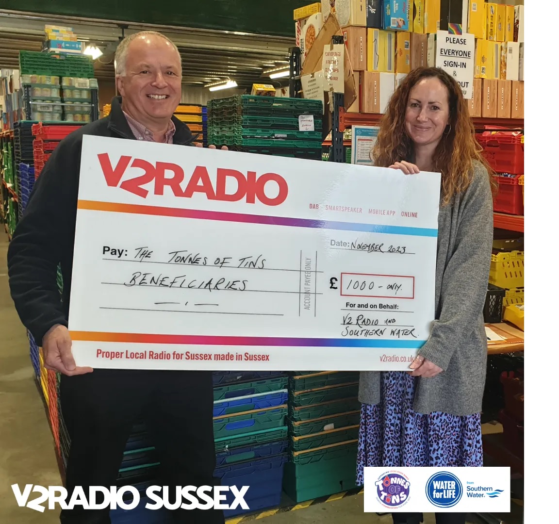 Food banks across the South East are set to receive their share of a £30,000 cash boost as part of an ongoing partnership between V2 Radio and Southern Water.
