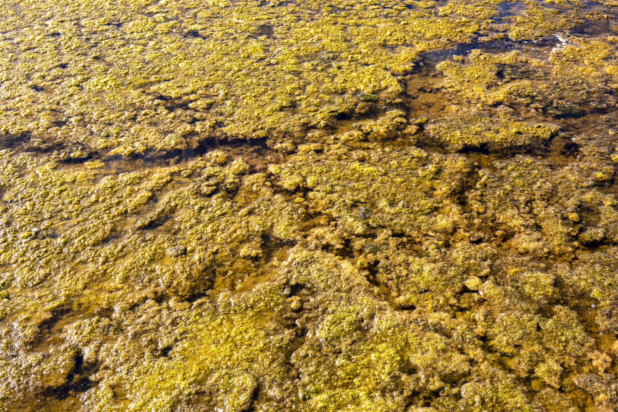 In summer, the warmer weather and lighter days encourage algae growth. Algae can look like frog spawn and different types of algae have different colours. It can form in the sea and inland in freshwater too.
